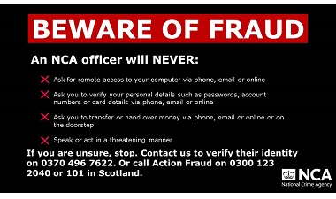 Fraudsters are posing as National Crime Agency officers over the phone in an attempt to con members of the public out of their money